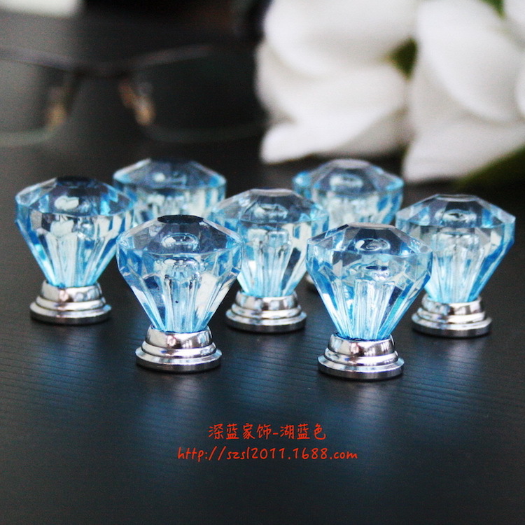 Gagang kaca organik kristal kristal transparan bentuk berlian kenop pegangan lubang tunggal kristal lemari dapur modern