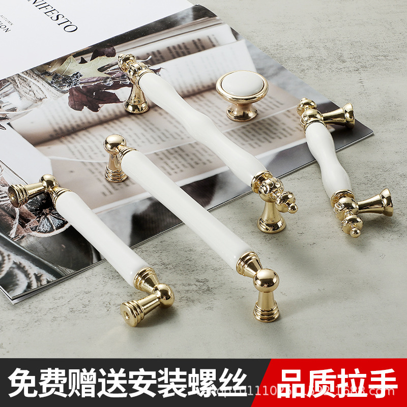 Ringan bergaya Eropa emas Keramik pegangan modern minimalis Nordik laci sepatu kabinet lemari pakaian pegangan pintu lubang tunggal