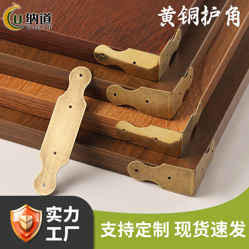 Furnitur antik bergaya Tiongkok, kotak kayu kamper sudut tertutup tembaga, strip kuningan, bagian dekoratif, pelindung sudut, abakus, pengencang penghubung tertutup tepi
