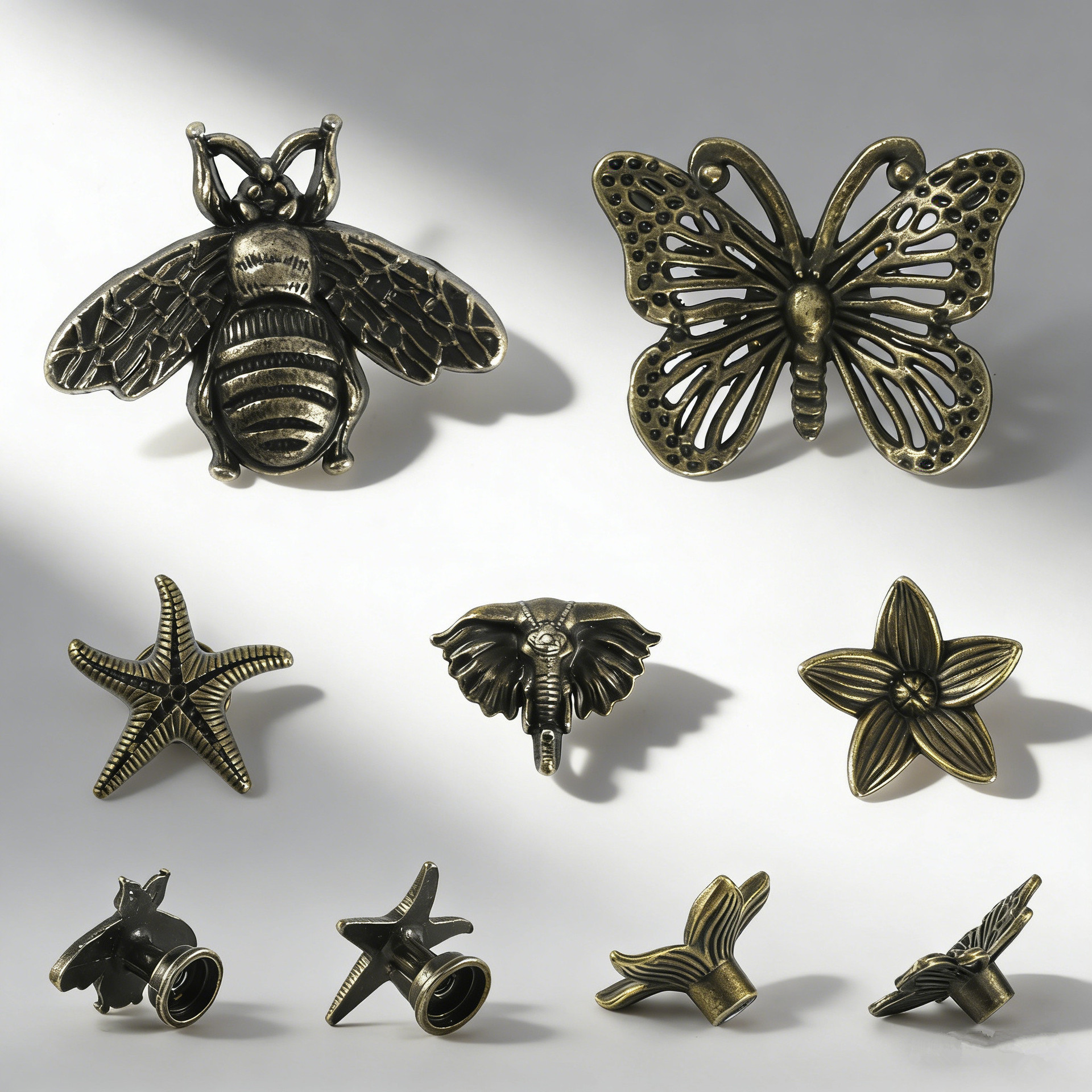 Grosir seng logam campuran pegangan hewan anak-anak lemari pakaian pegangan pintu kayu solid furnitur pegangan laci lubang tunggal lucu