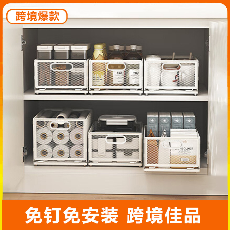 Keranjang Penyimpanan Makanan Ringan Strap Lintas Batas Banyak Lapisan Bumbu Dapur Tempat Penyimpanan Botol Rak Penyimpanan Berlapis Dalam Lemari Tanpa Kuku