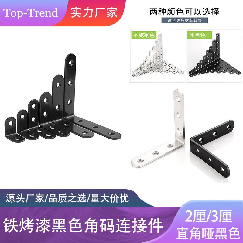 Braket rak kode besi sudut 90 derajat, tebal, baja gulung dingin, sudut 90 derajat, braket partisi L, braket sudut kanan, Kode sudut hitam, grosir