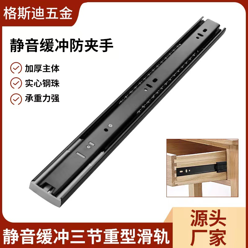 Sumber produsen baja dingin digulung laci rel geser penyangga redaman panduan pakaian rel kabinet baja tiga jalur grosir