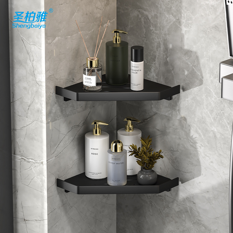 Rak penyimpanan tripod 304, rak Toilet stainless steel kamar mandi lapisan ganda dapur sudut hitam