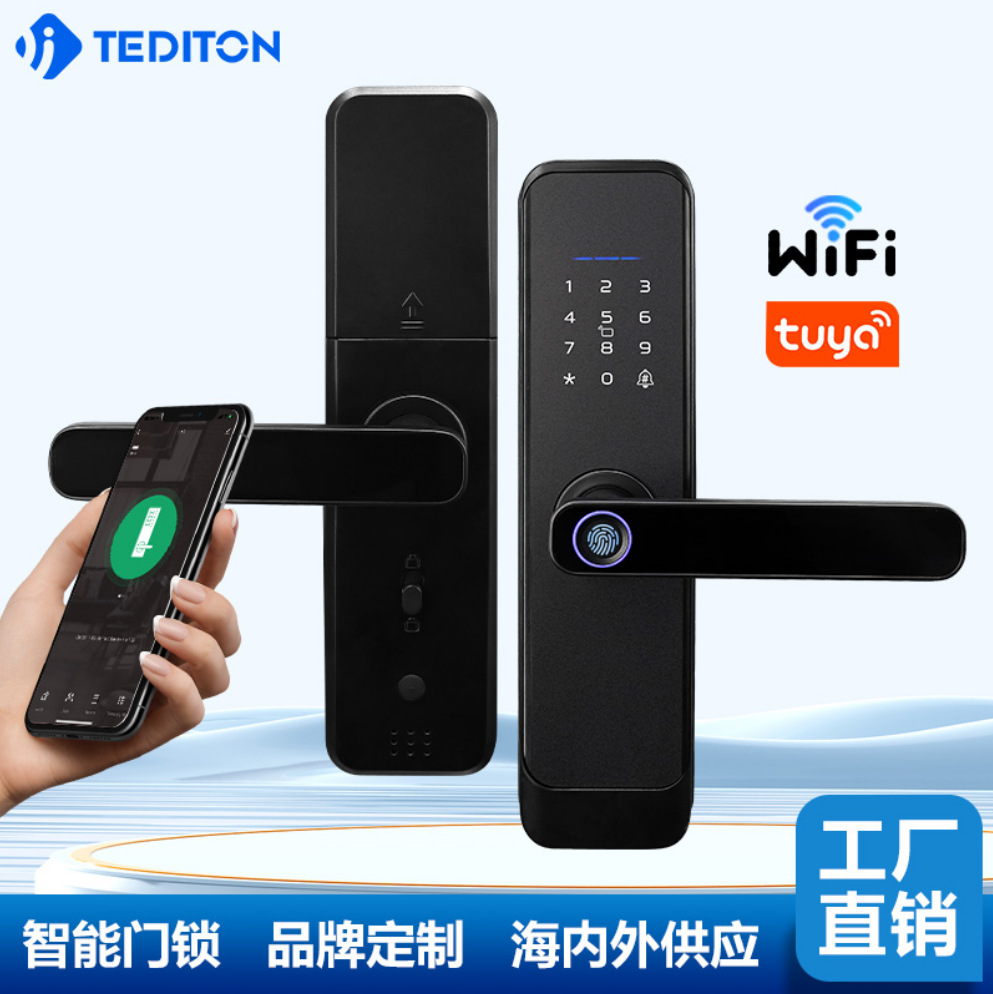 一握即开把手指纹锁 外销美式热卖密码刷卡房门锁 涂鸦APP智能锁