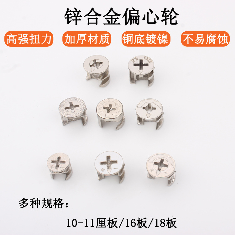 Tiga dalam satu paduan seng roda eksentrik 10/16/18cm pelat furnitur pembongkaran pengencang konektor kunci berlapis nikel