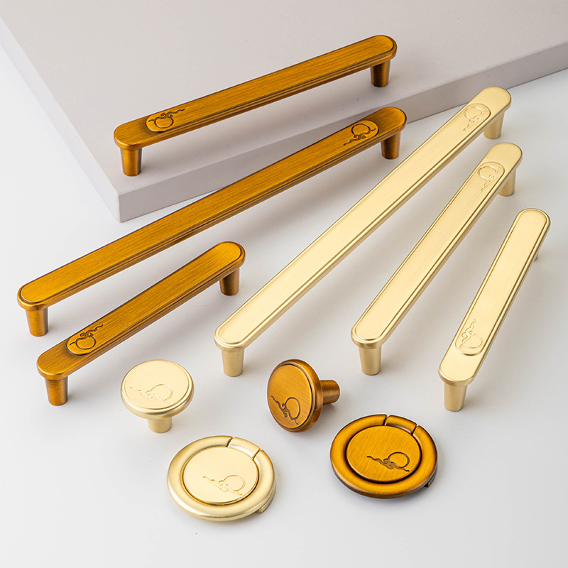 Pegangan pintu kabinet kabinet perunggu kuning gaya Tiongkok baru pegangan pintu lemari dapur kabinet Eropa retro Aloi seng