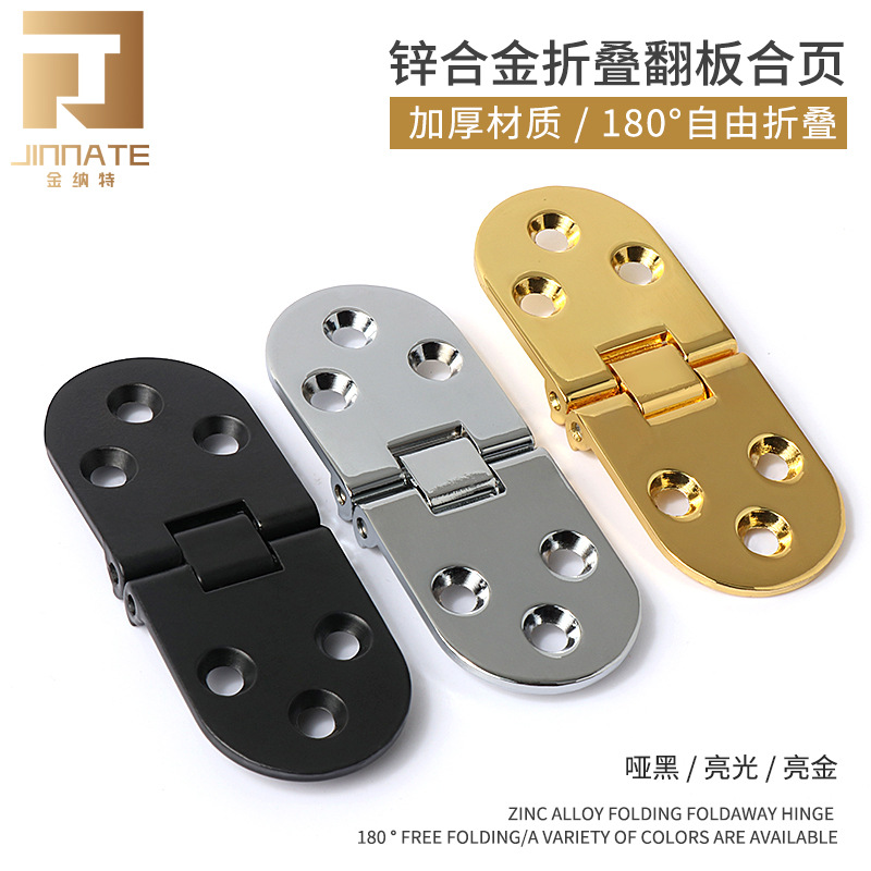 Engsel meja bulat lipat bahan Aloi seng, engsel replika pintu lipat tersembunyi meja makan terbuka datar 180 hitam setengah lingkaran