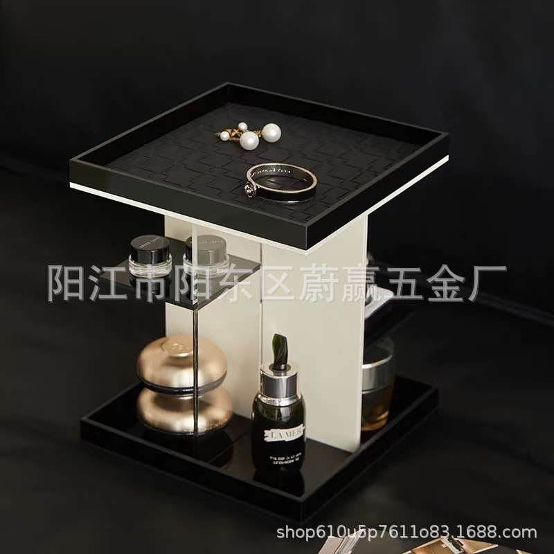 Rak penyimpanan kosmetik akrilik berputar, nampan perhiasan, parfum, produk perawatan kulit, meja rias, kotak penyimpanan bertingkat