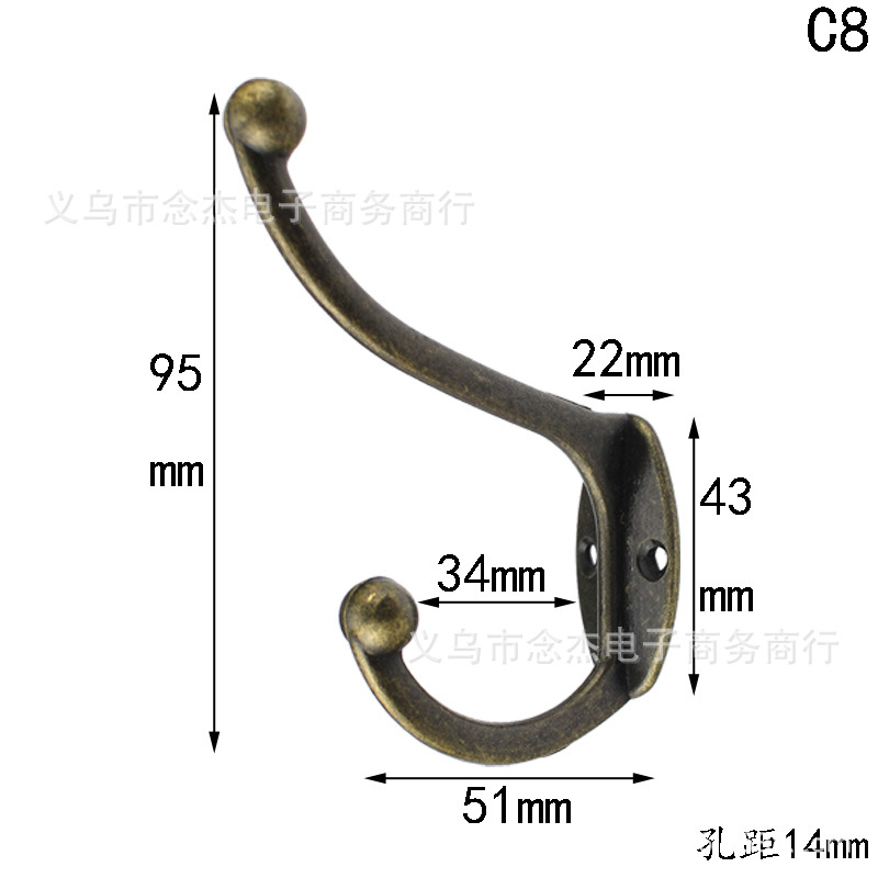 Grosir hook furnitur perangkat keras pakaian antik hook kabinet lemari pakaian hook alloy super kuat hook besar