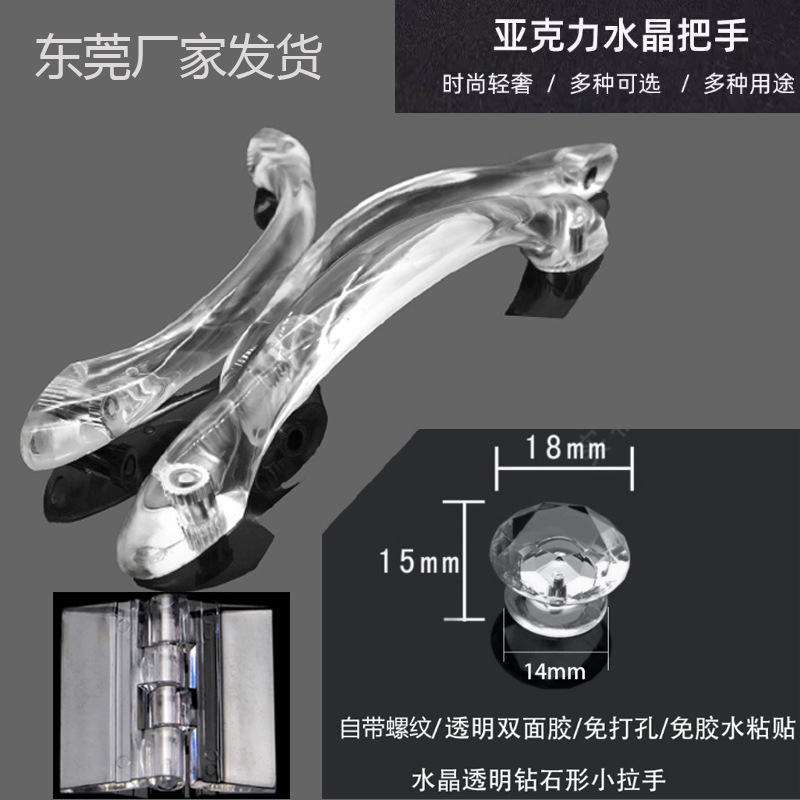 Gagang kecil berlian perekat tali transparan akrilik bebas lem dengan benang pegangan pintu akrilik pegangan kecil