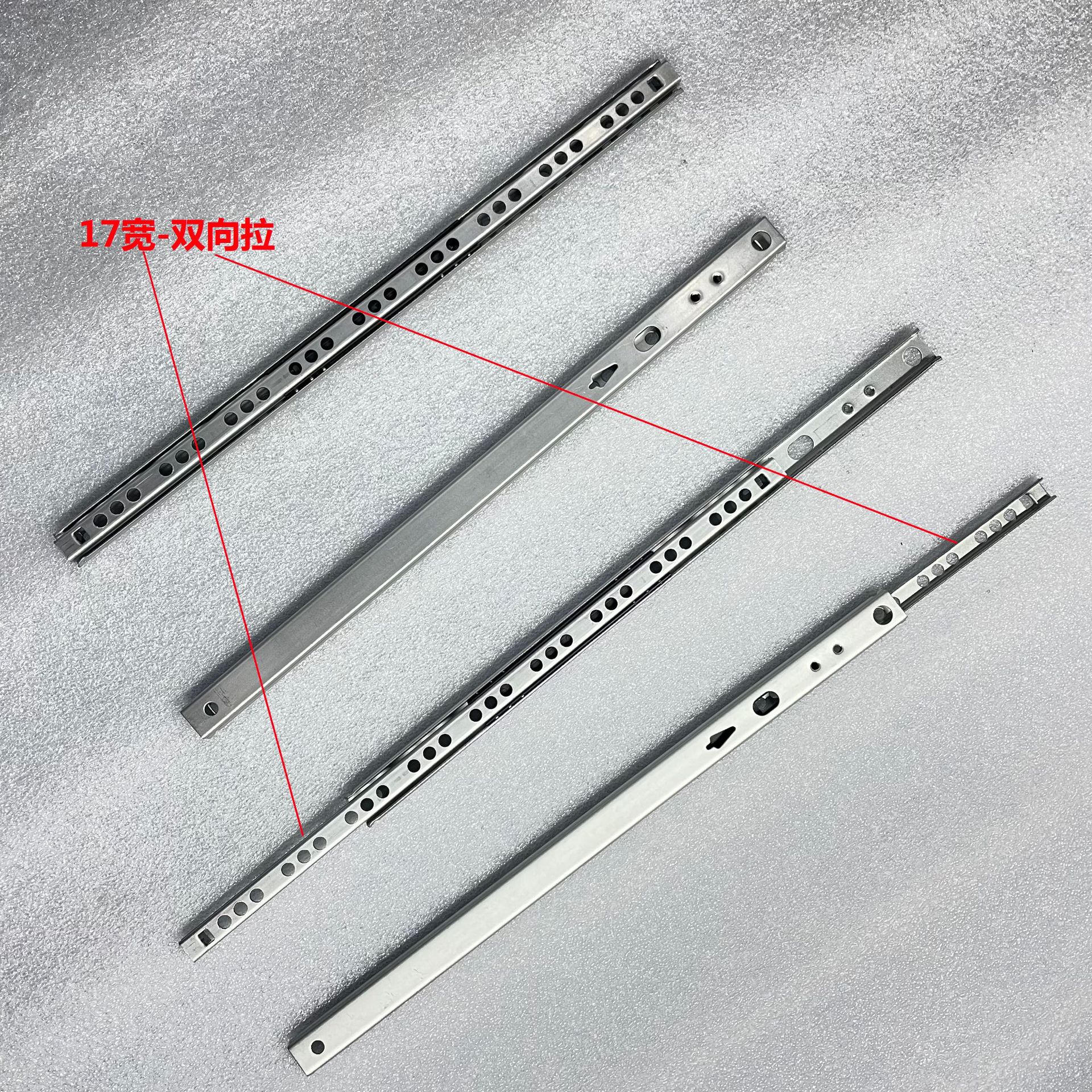 17 "lebar 1.0" ketebalan dua lipat dua arah panduan rel putih laci aksesori perangkat keras bola baja mini rel geser