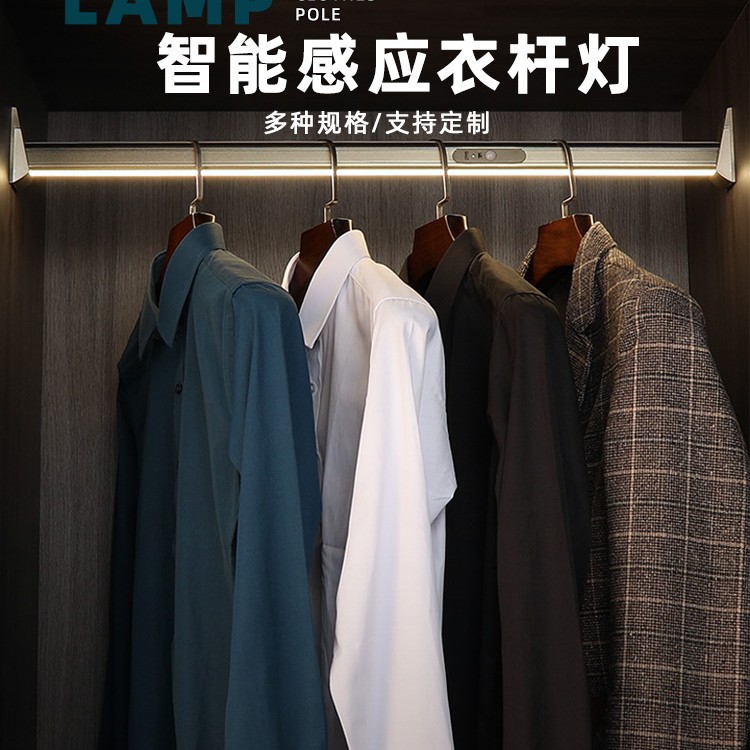 Tiang pakaian lemari dengan led induksi cahaya, tiang baju pintar pengisian daya tiang baju