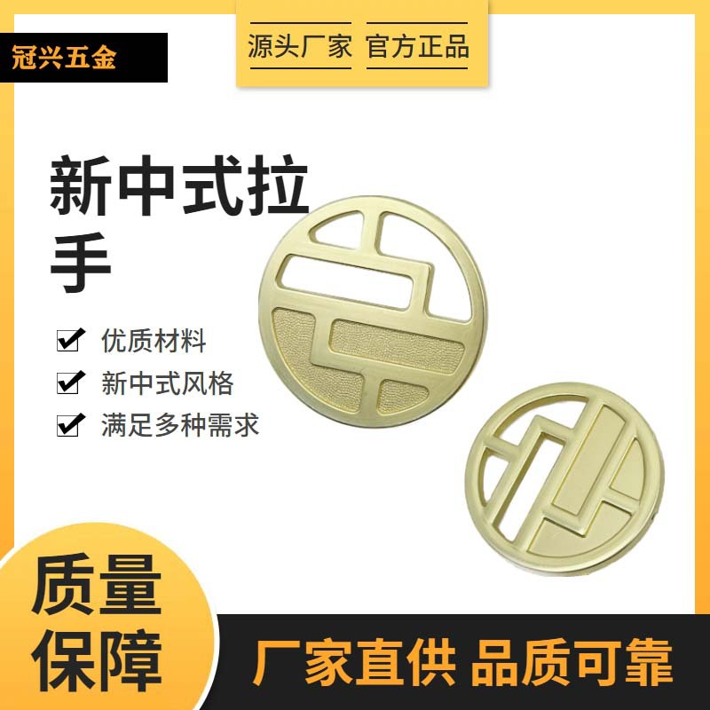 Pegangan pintu lemari pakaian warna tembaga, gagang pintu emas gaya Tiongkok baru liontin cincin pola belakang laci pegangan lubang tunggal