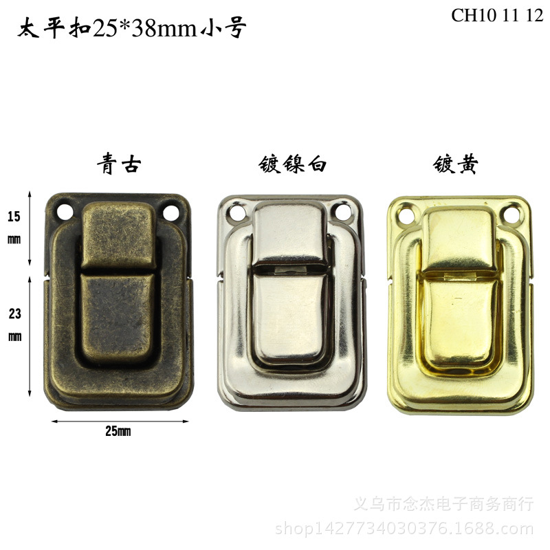 Kotak Taiping ukuran kecil gesper antik kunci besi kotak anggur kunci kotak kayu gesper kotak perunggu 25*37MM