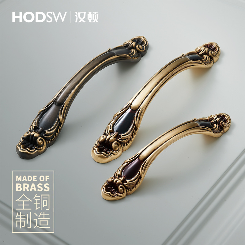 Hanton Semua tembaga pegangan pintu kabinet Eropa buku kabinet sepatu gagang pintu laci kuningan padat Amerika Retro pegangan kabinet dapur