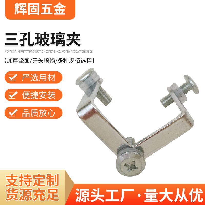 Grosir aksesori perangkat keras furnitur pasokan produsen klip kaca laminasi rumah tangga klip kaca tetap klip kaca tiga lubang