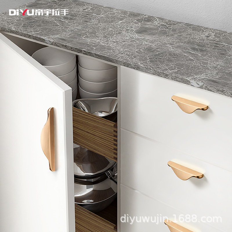 Log lemari pintu pegangan panjang sepatu samping tempat tidur rak buku dapur Emas modern sederhana pegangan pintu kepala kayu polos