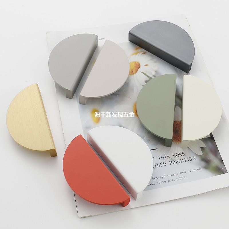 Pegangan pintu laci lemari pakaian Semi melingkar aksesoris perangkat keras paduan aluminium multi Warna pegangan kecil pegangan kabinet mandi