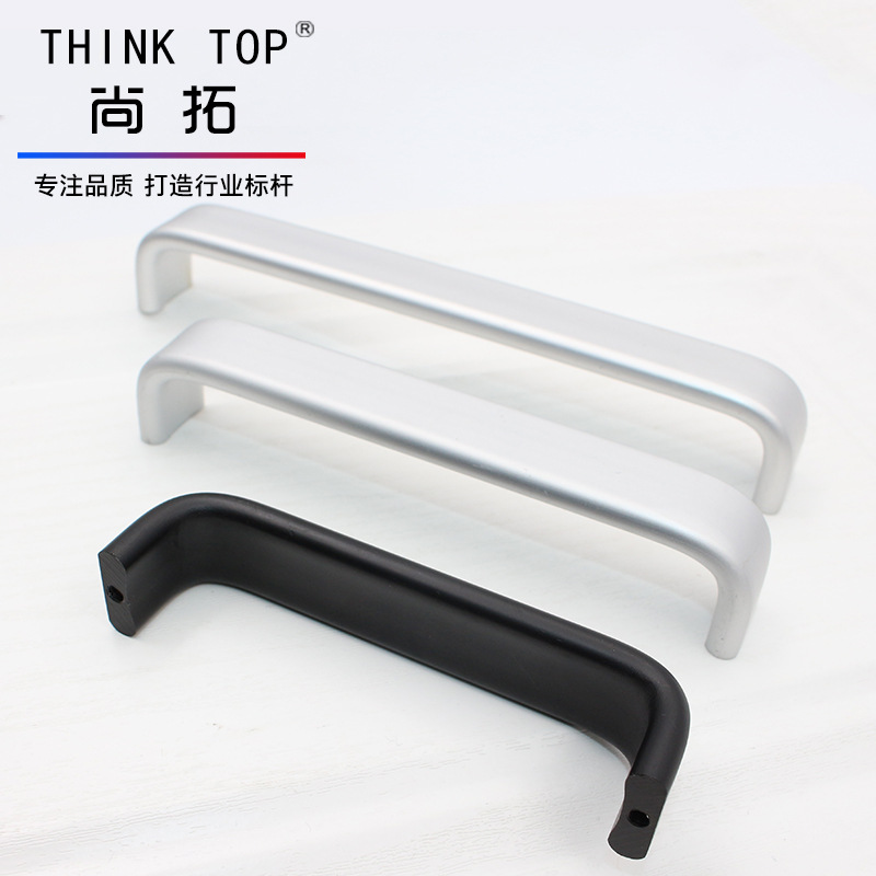 Pegangan pintu laci kabinet minimalis, pegangan perangkat keras furnitur gagang paduan aluminium bentuk U hitam panjang