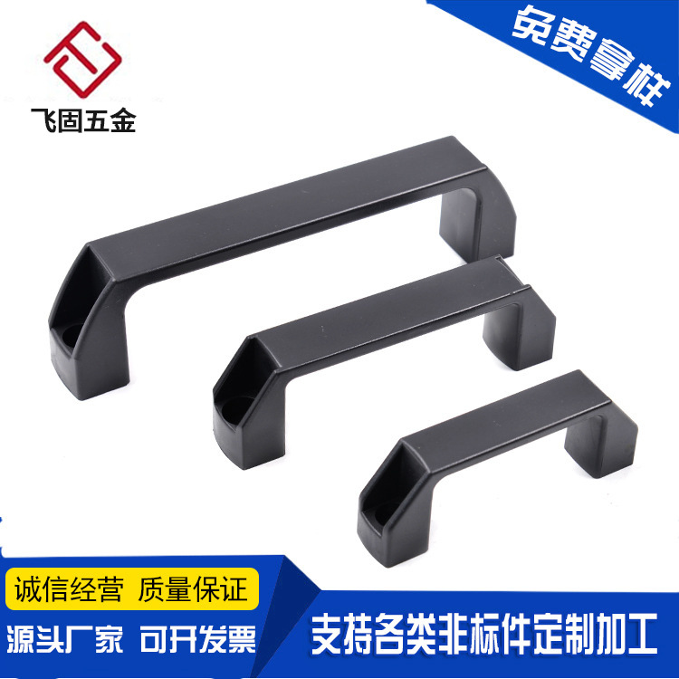 Pegangan pintu kabinet hitam terang, pegangan plastik nilon jarak 90/120/150/180 terang