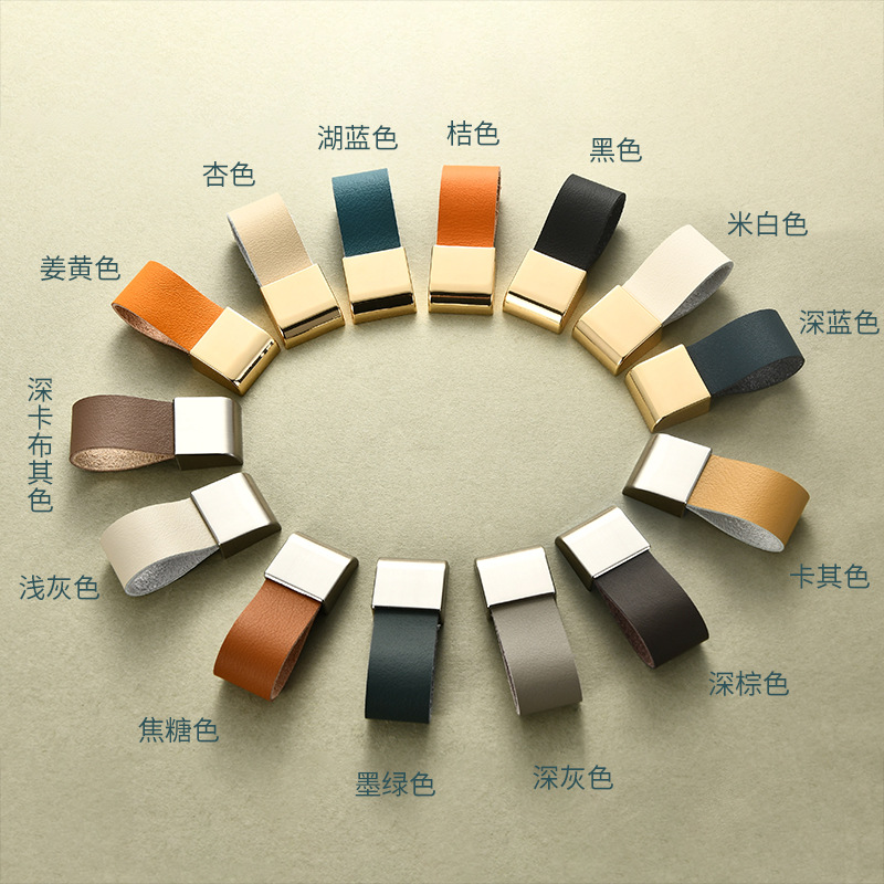 Kulit asli ringan minimalis kulit pegangan kabinet pintu pegangan laci sederhana tahan air antigores anti-tabrakan pegangan lembut bebas lubang