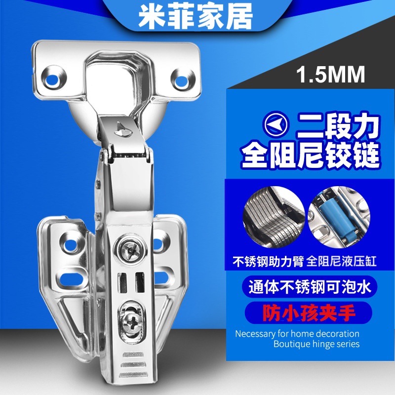 Engsel peredam penuh gaya dua bagian perendaman air 1.5 engsel pintu lemari sudut kecil sudut nol baja tahan karat penuh