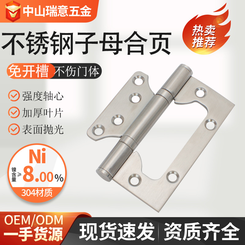 Engsel datar 201 baja tahan karat 4 inci, engsel tebal senyap bantalan Eropa dari pabrik