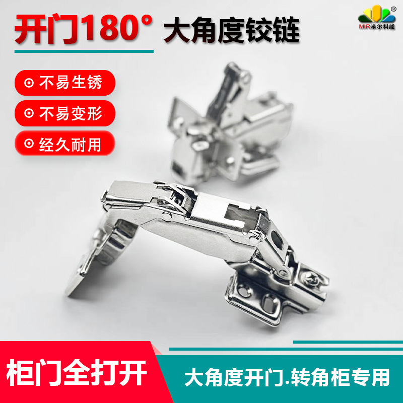 Engsel 180 derajat dua tahap dengan bukaan datar untuk pintu lemari, lemari sudut, engsel kabinet dengan peredam 165 derajat, engsel kabinet.