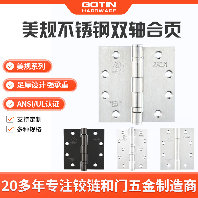 Engsel baja tahan karat S304 standar Amerika huruf perak disikat, pintu kabinet industri lipat sudut besar dipertebal