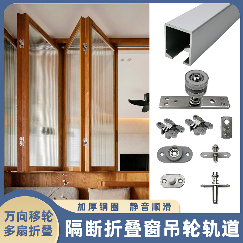 Pintu dan jendela lipat logam campuran aluminium, jalur roda gantung universal, jendela partisi balkon, pintu kayu geser, set lengkap aksesoris perangkat keras