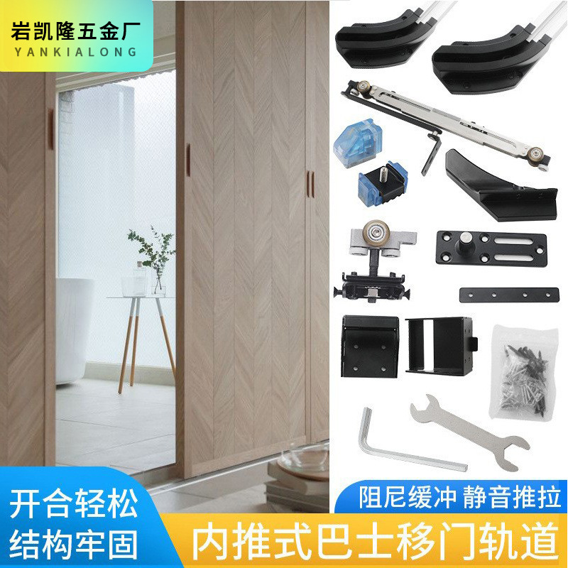 Pintu bus dorong dalam pintu geser rel geser ruang ganti kamar tidur utama pintu tidak terlihat geser pintu datar aksesori perangkat keras