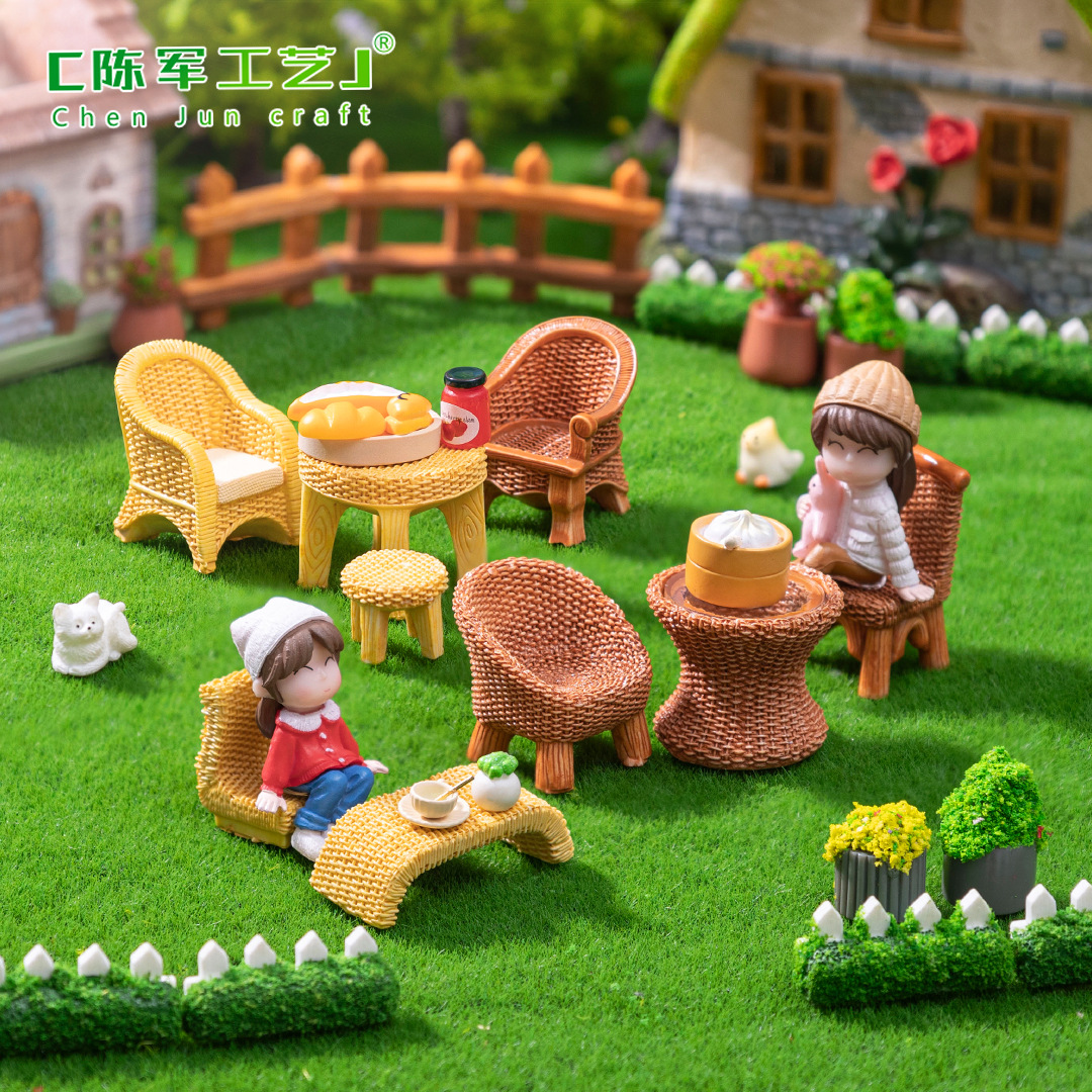 Microscape Kreatif Simulasi Bambu Meja Kursi Kursi Aksesoris Dekorasi DIY Ornamen Kecil Mini Rumah Boneka