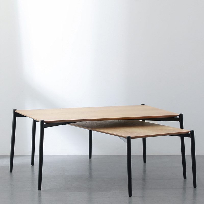 Meja sisi panjang sederhana desain Denmark, meja kopi Nordik kombinasi besi kreatif sofa meja kopi kayu padat meja sudut kecil