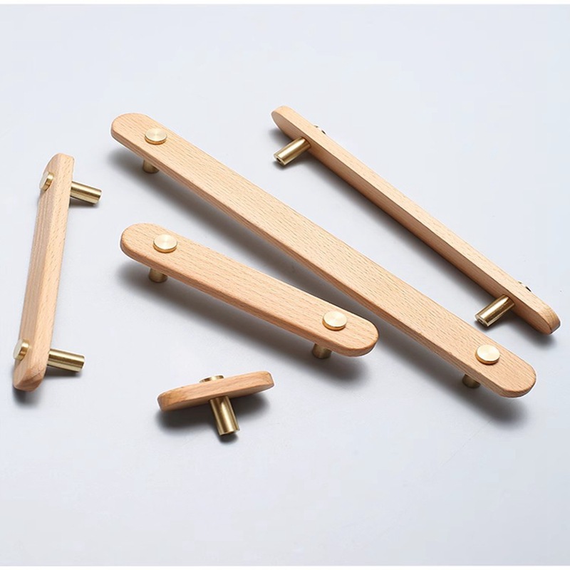 Nordic lemari pakaian pegangan kayu kabinet pintu laci pegangan kayu solid modern Jepang sederhana Beech hitam walnut