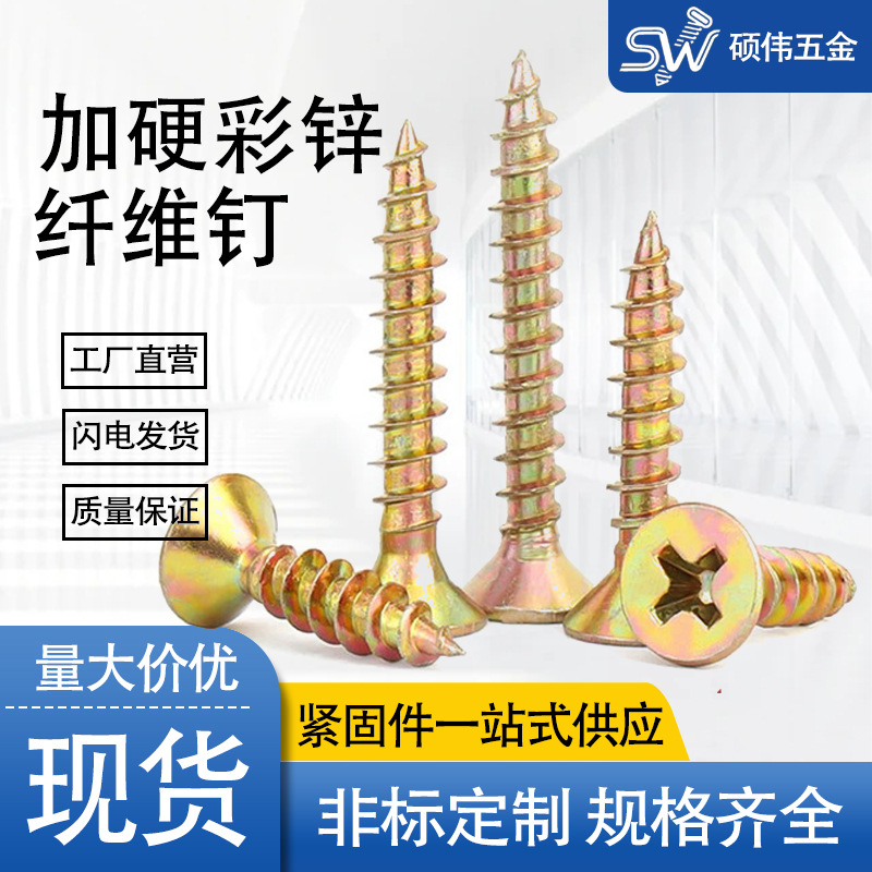 镀彩锌纤维钉平头自攻螺丝大全家具自攻丝螺钉木螺钉干壁钉M3-M5
