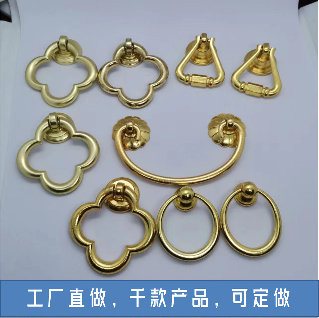 Gagang pintu lemari Cina baru model semanggi empat daun, liontin bunga pir, bahan zinc alloy, warna kuningan antik, grosir.
