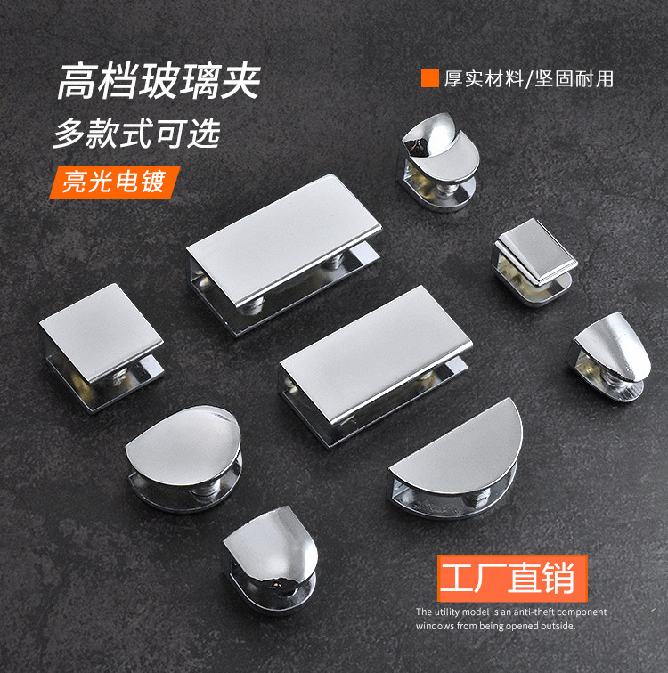 Klip kaca persegi panjang, klip kaca tetap, klip rak, dinding kamar mandi, klip kaca tetap, grosir