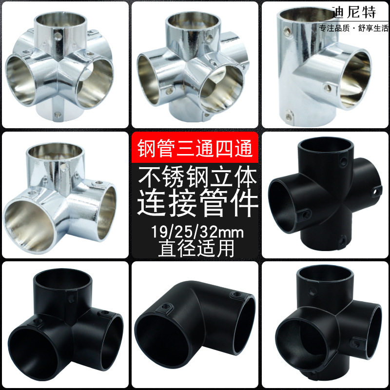 Konektor pipa Stainless steel, kaus kain sederhana, konektor logam empat arah, aksesori plastik, rak sepatu tebal Antarmuka