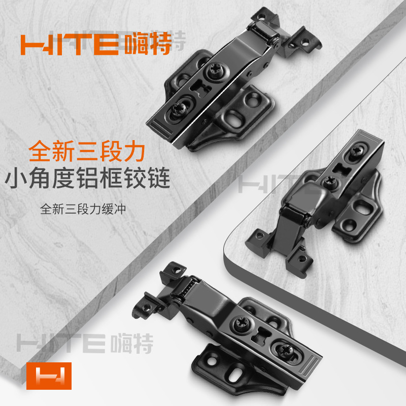 Engsel bingkai aluminium tiga bagian yang kuat, engsel pintu kaca minimalis peredam penuh dua bagian, engsel pintu kaca hitam, engsel pintu kaca lemari anggur
