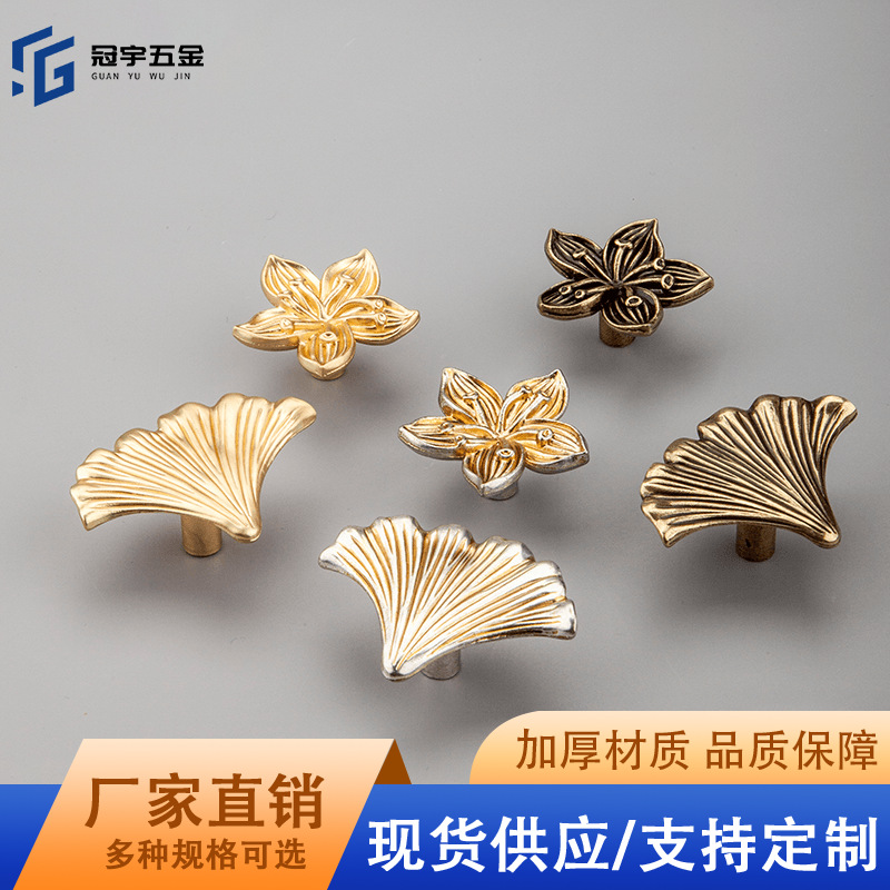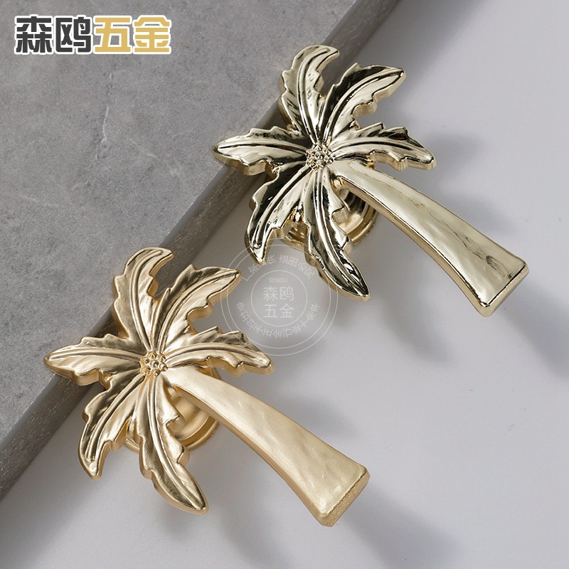 新中式椰子树形轻奢橱柜衣柜门金色单孔拉环家具抽屉圆形小拉手
