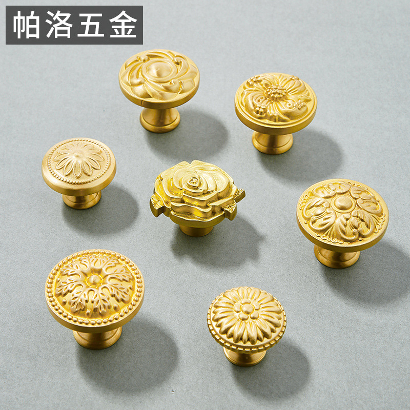 Pegangan pintu furnitur tembaga murni, Laci dapur gaya Eropa retro emas Amerika pegangan pintu kuningan mewah ringan
