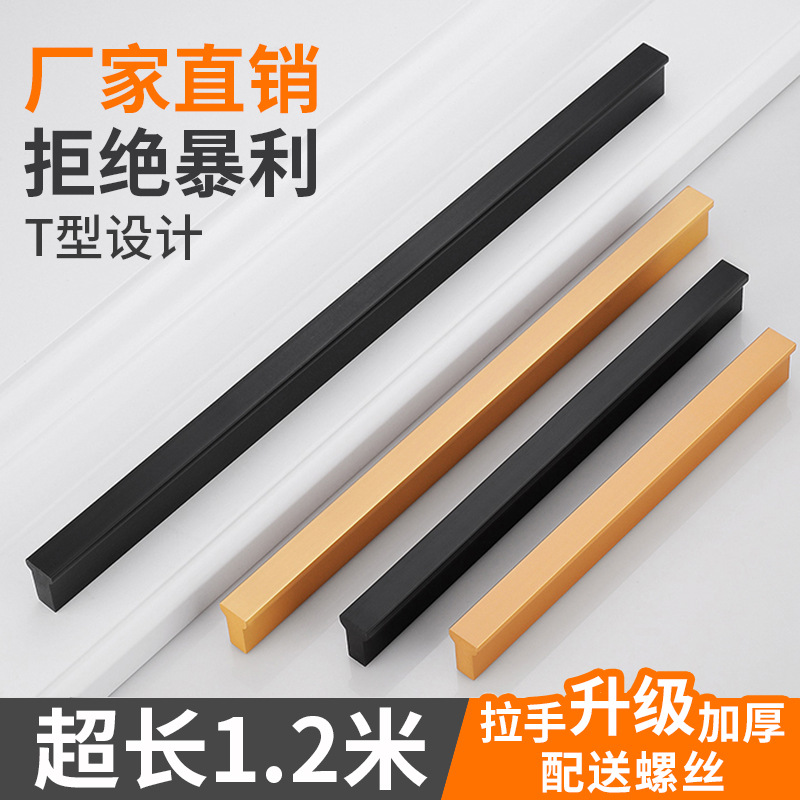 Laci lemari logam campuran aluminium, satu meter diperpanjang padat emas hitam laci lemari pegangan Nordik sederhana pegangan satu kata