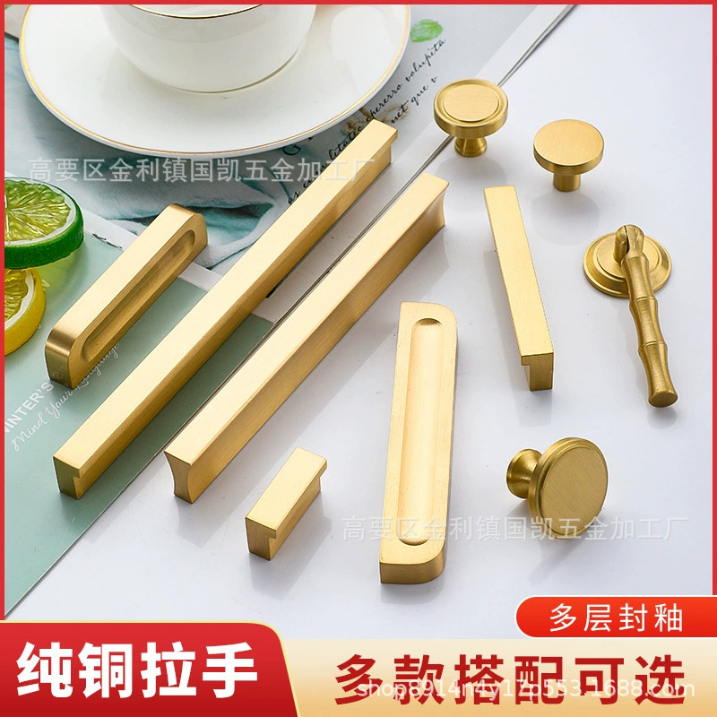 Pegangan pintu kabinet tembaga murni, gaya Tiongkok, gagang laci lemari pakaian minimalis modern, pegangan pintu lubang tunggal, pegangan pintu