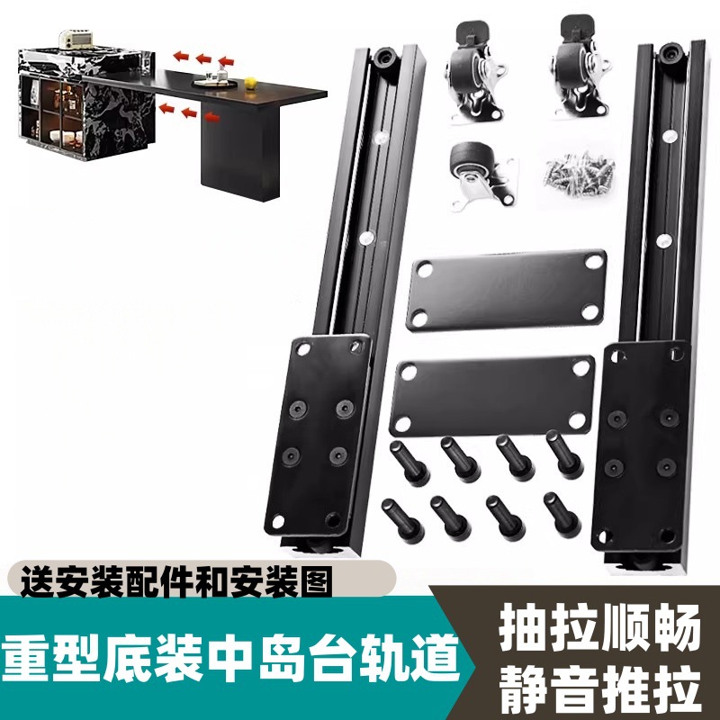 Aksesoris rel geser meja pulau putar, rel meja pulau tarik keluar, rel pandu meja makan meja pulau yang dapat digeser dan diperpanjang.