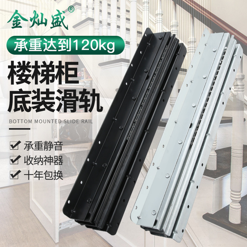 Rel geser tugas berat untuk lemari bawah tangga, rel pandu bawah lemari sepatu yang diperkuat dan senyap, rel teleskopik tiga bagian dorong-tarik grosir