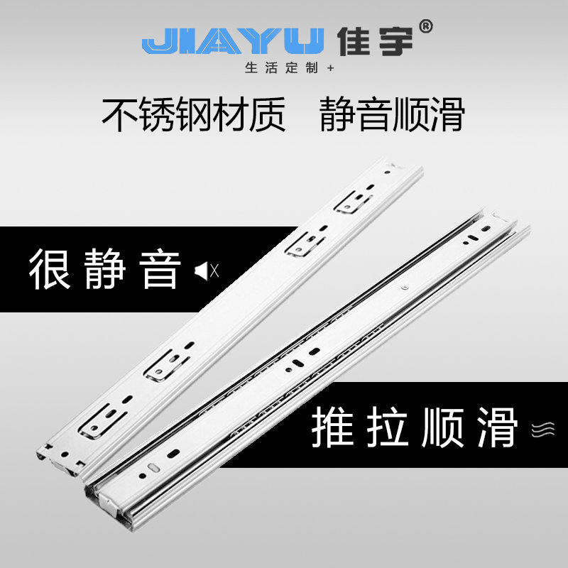 304 hidrolik peredam guncangan baja tahan karat menebal laci rel geser rel panduan tiga bagian sunyi kabinet rel pakaian slide