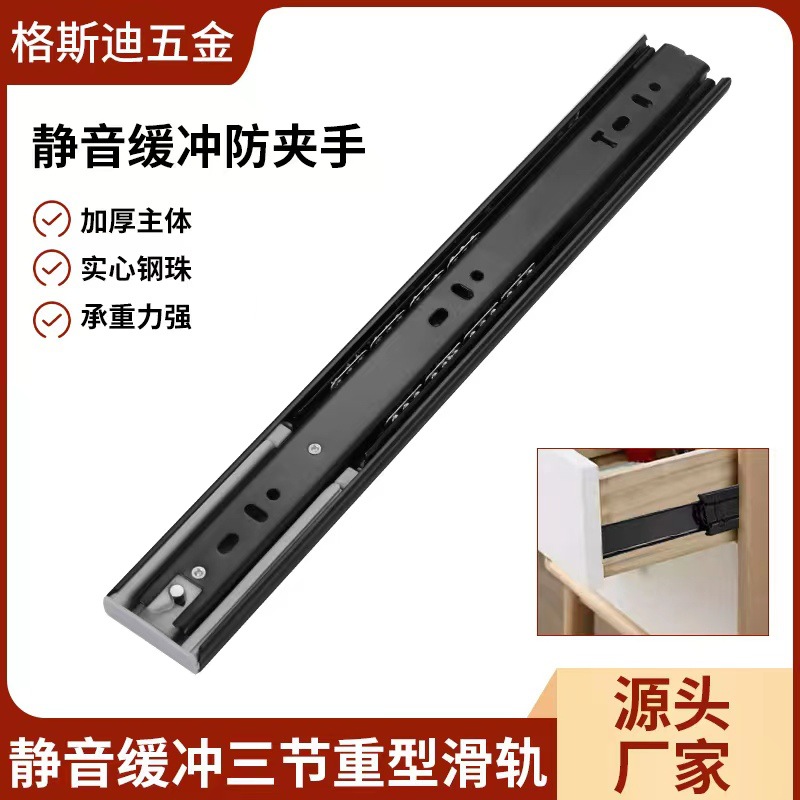 Dingin digulung baja tebal laci rel geser rebound penyangga redaman rel pakaian perabotan kabinet baja bola tiga jalur grosir