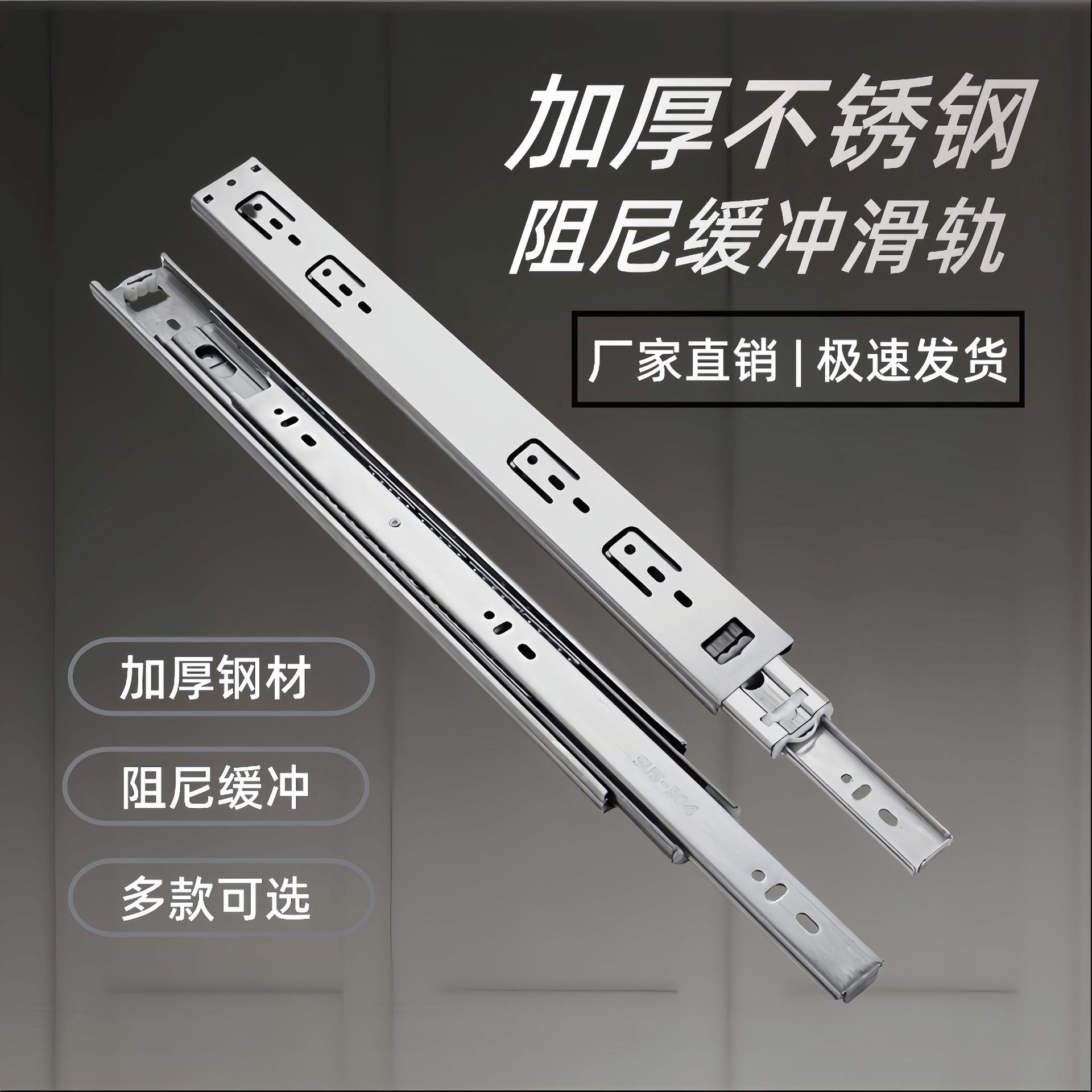 304 hidrolik peredam guncangan baja tahan karat menebal laci rel geser rel panduan tiga bagian sunyi kabinet rel pakaian slide