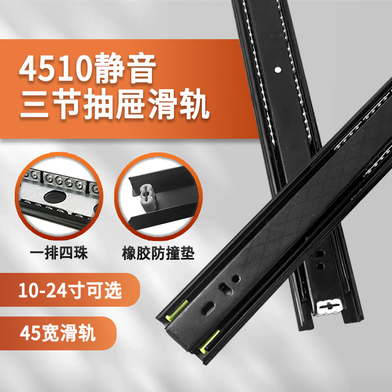4510 Tiga Bagian Buffer Slide Rail Lemari Lemari Lemari Side Redaman Laci Penyangga Rel Panduan Ekstra Tebal Rel